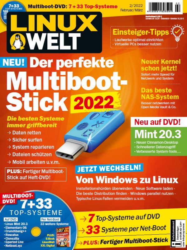 LinuxWelt 2/2022 – Der perfekte Multiboot-Stick 2022 – am Kiosk
