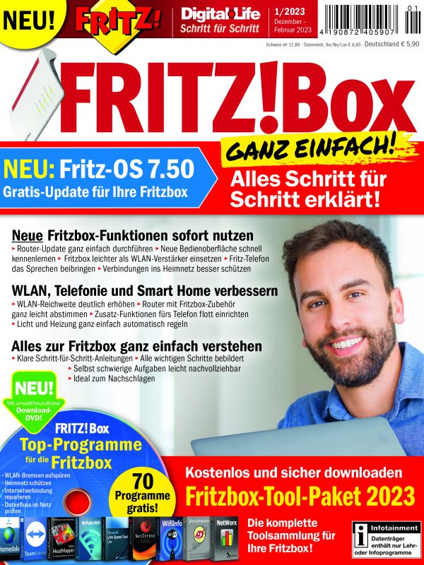 In der neuen Digital Life 1/2023 lernen Sie in bebilderten Schritt-für-Schritt-Anleitungen alle Fritzbox-Funktionen kennen. ...