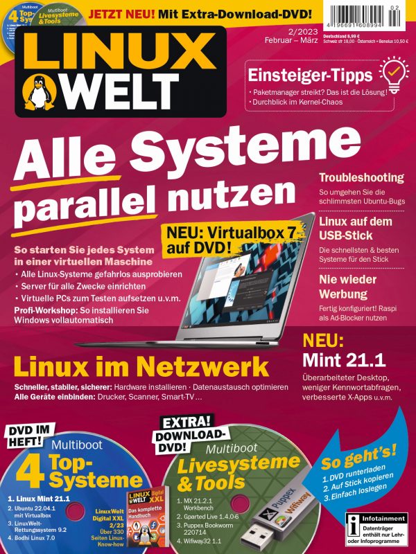 LinuxWelt 2/2023 – Alle Systeme parallel nutzen – am Kiosk
