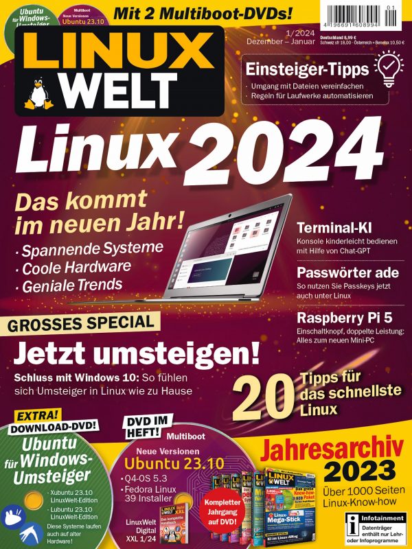 In der neuen LinuxWelt lesen Sie unter anderem, was das Linux-Jahr 2024 bringen wird. ...